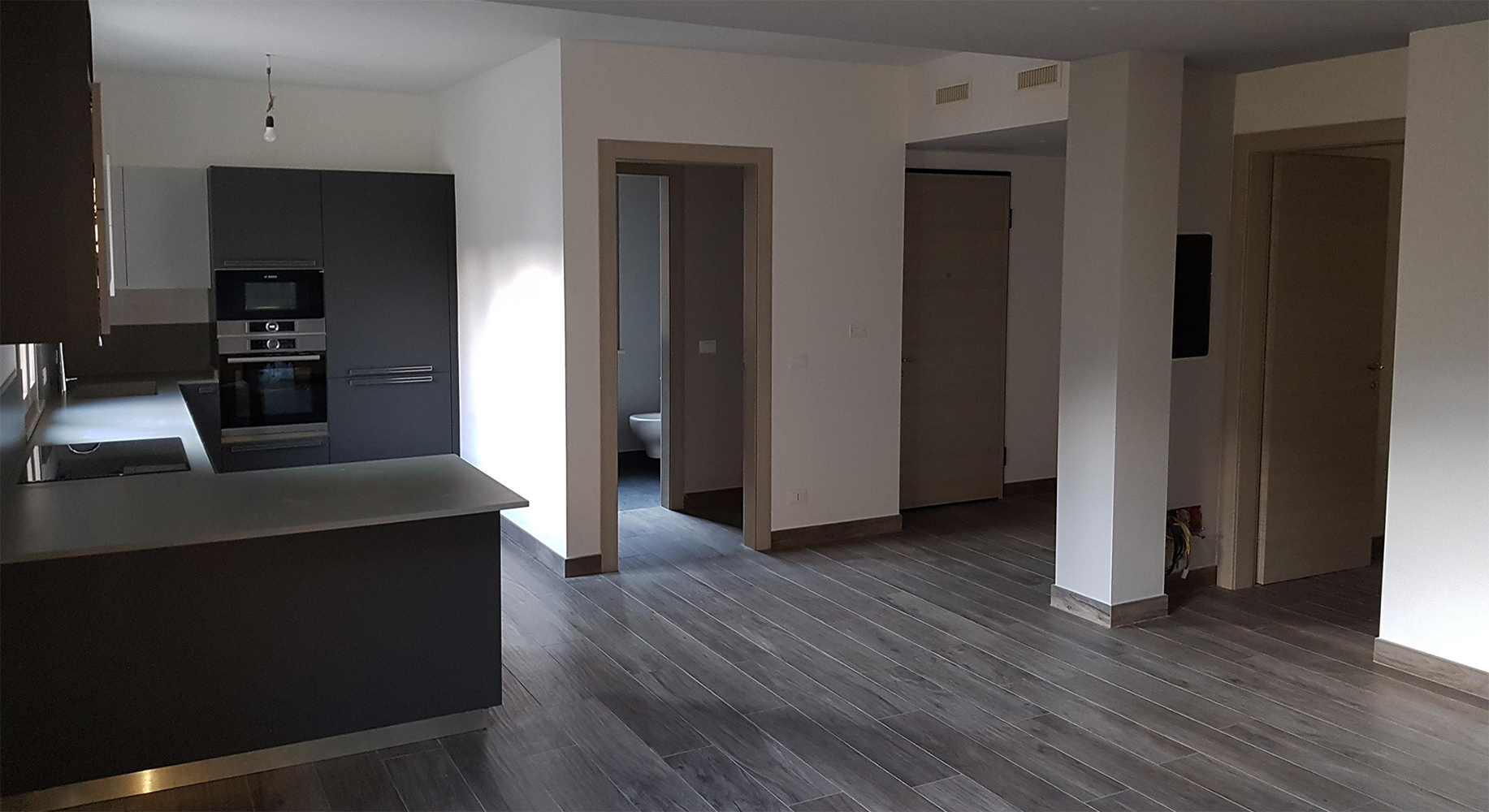 Ristrutturazione ambiente di ingresso con realizzazione open space soggiorno cucina...